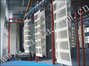 工藝流程粉末靜電噴涂線主要包含以下工藝流程:1、前處理(除油、除銹、磷化);2、靜電噴涂;3、高溫固化(根據(jù)噴涂塑粉成分的不同和要求厚度的不同,固化溫度通常為160-210度);4、出爐冷卻。